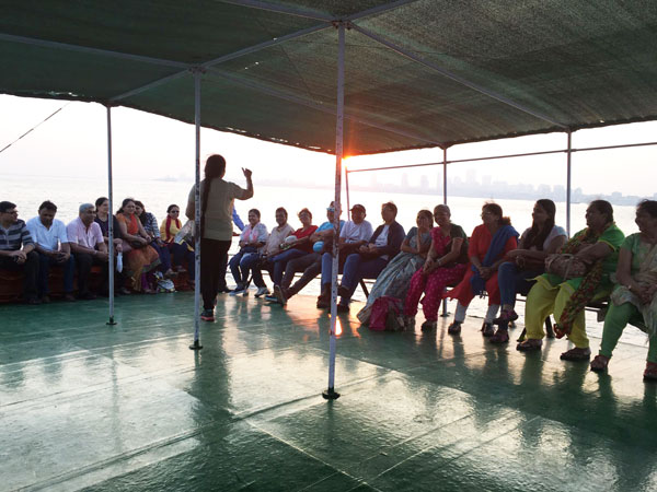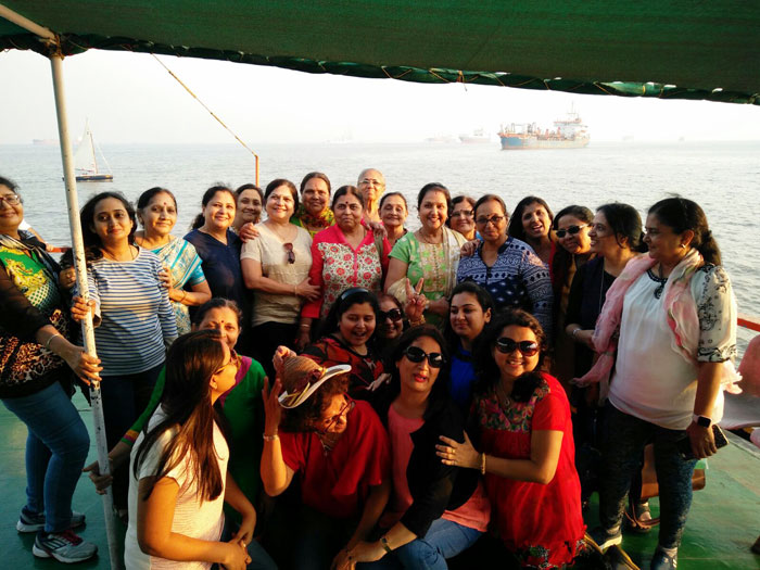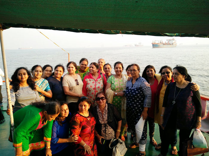 All the members were welcomed by Mrs. Prabhaben Patel (President). There after games were hosted in which all the members participated with great enthusiasm. Winners were announced & prizes given. Soon after, the game of Antakshri was played, creating an atmosphere of great bonhomie and joy. It was sunset time, which started picture taking session against setting sun, Mumbai harbour & the majestic Arabian Sea. Thereafter, new & old members formally introduced themselves to each other. Thus, a two hour boat ride came to an end at 7 pm amidst great fun & frolic.