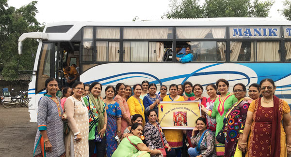 This year’s trip was to Trambakeshwar( Nasik ) and Shirdi. The auspicious trip started with a welcome speech by Prabhaben Patel( President ). Mrs. Jignasa Patel rendered beautiful Bhajans & all the members accompanied her in singing. The aarti was sung and prasad packets of dry fruits & sweets were distributed. Breakfast was arranged at a Jain Derasar Complex at Shahpur. The bus journey continued with Jyoti Chapatwala & Deepa Khatiwala hosting a unique game of housie having different Lord Krishna’s names. Reached Trambakeshwar and everyone got a good Darshan of the holy Shivling. A short pooja was also performed by temple priest in which everybody participated. Thereafter, a delicious lunch of Gujarati Thali was partaken at Panchwati Delite Restaurant.